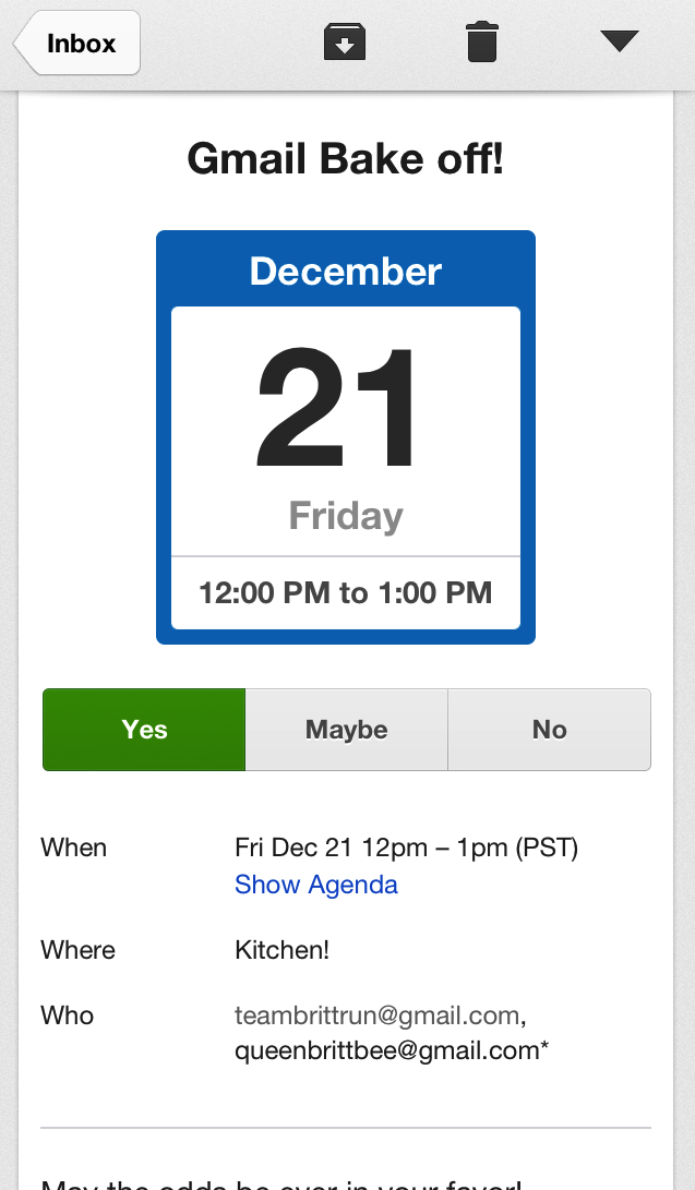 كما يضيف التطبيق أيضًا العديد من الميزات الموفرة للوقت. فعلى سبيل المثال، عند إجراء عملية بحث، تظهر لك توقعات الإكمال التلقائي أثناء الكتابة، مما يوفر الأوقات الثمينة (والأخطاء الإملائية). علاوة على ذلك، يمكنك الرد على دعوات تقويم Google بالإضافة إلى إجراءات 1+ والتعليق على المشاركات في +Google من التطبيق.